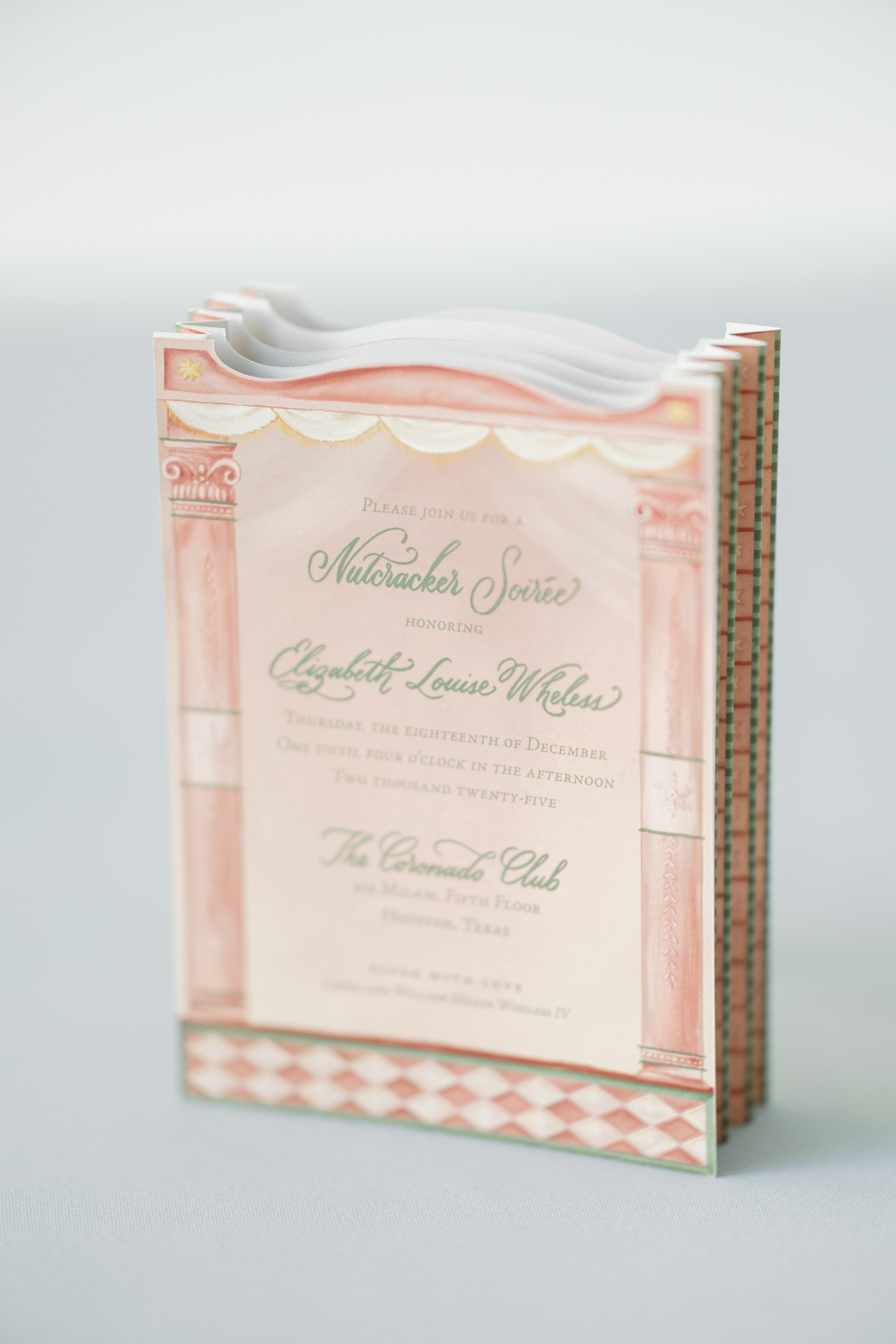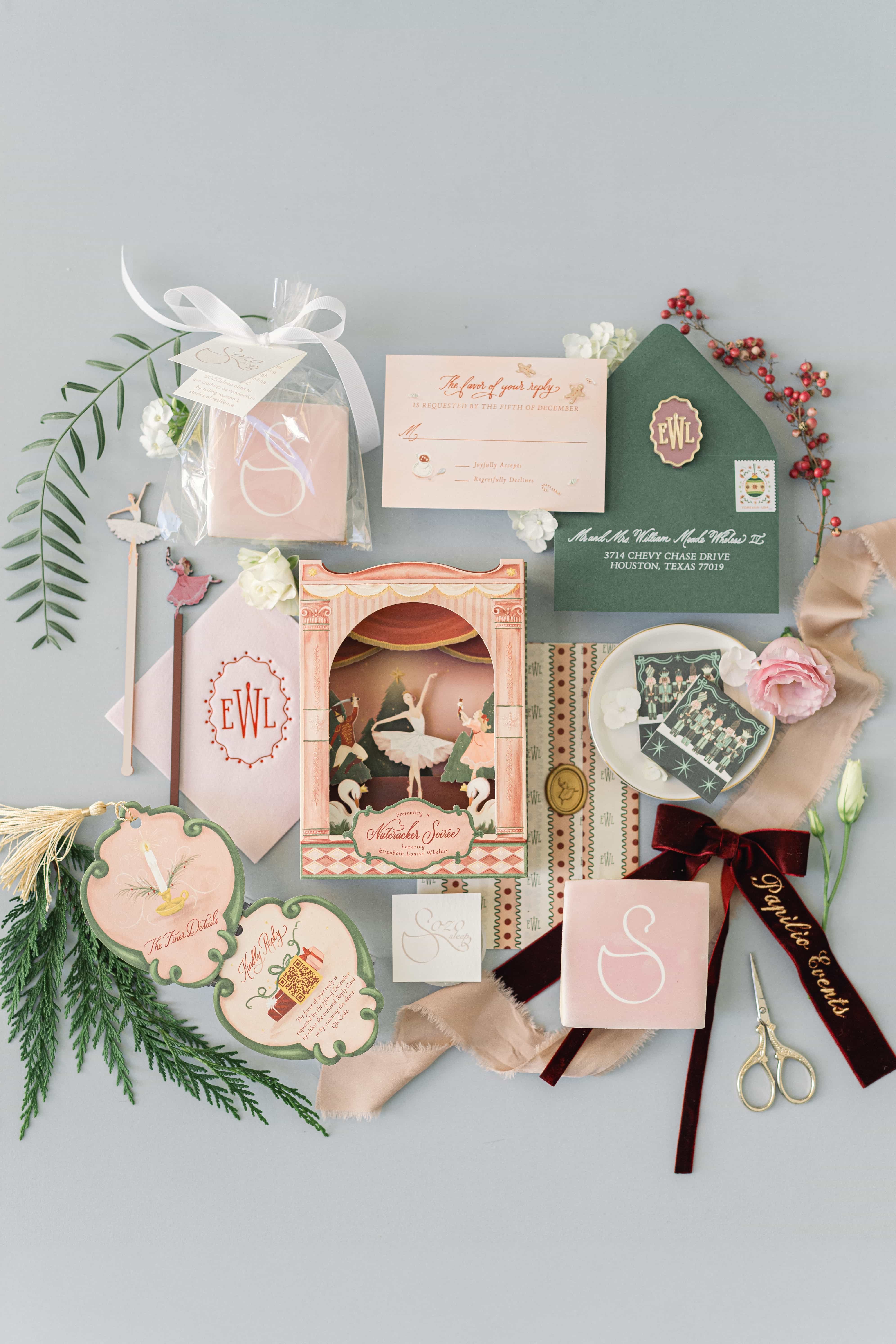 A debutante celebration inspired by a cherished family tradition shared with her grandmother of attending The Nutcracker. We transformed the venue into a winter fantasy with flocked trees, sleigh moments, a fireside lounge with live strings, and a Sugar Plum Fairy welcome into the Land of Sweets. Custom nutcrackers, decadent desserts, and an espresso martini luge completed the scene, all while celebrating the debut of her new sleepwear company, Sozo Sleep.